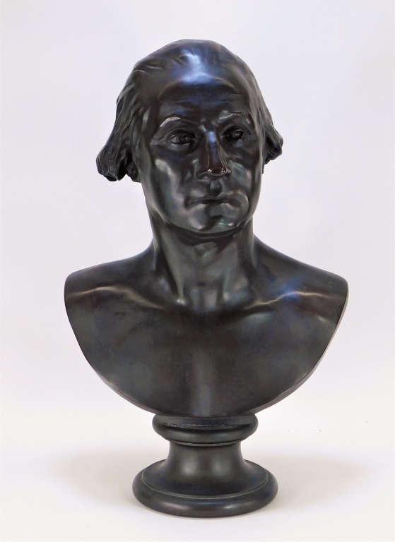 The bronze bust of George Washington by the French metalworker and manufacturer Ferdinand Barbedienne (1810-1892) is expected to change hands for $6,000-$9,000. The naturalistic, life sized bust shows Washington with a neutral expression and strong nose. It was cast after a model by Jean-Antoine Houdon (1741-1828). It’s a finely detailed casting with beautiful brown patina.
