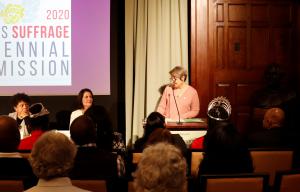 Julia Washburn, Acting Executive Director of the Women’s Suffrage Centennial Commission, spoke about the work the Centennial Commission is doing and will do to honor the 100th Anniversary of Women’s Suffrage. The Commission’s role is to commemorate and coordinate the nationwide celebration of the 100th anniversary of the 19th Amendment and to educate the American people about the efforts and undertakings of the women’s suffrage movement in the United States in a nonpartisan fashion. The 19th Amendment was fully ratified and announced on August 26, 1920. Today, over 68 million women vote in the U.S.