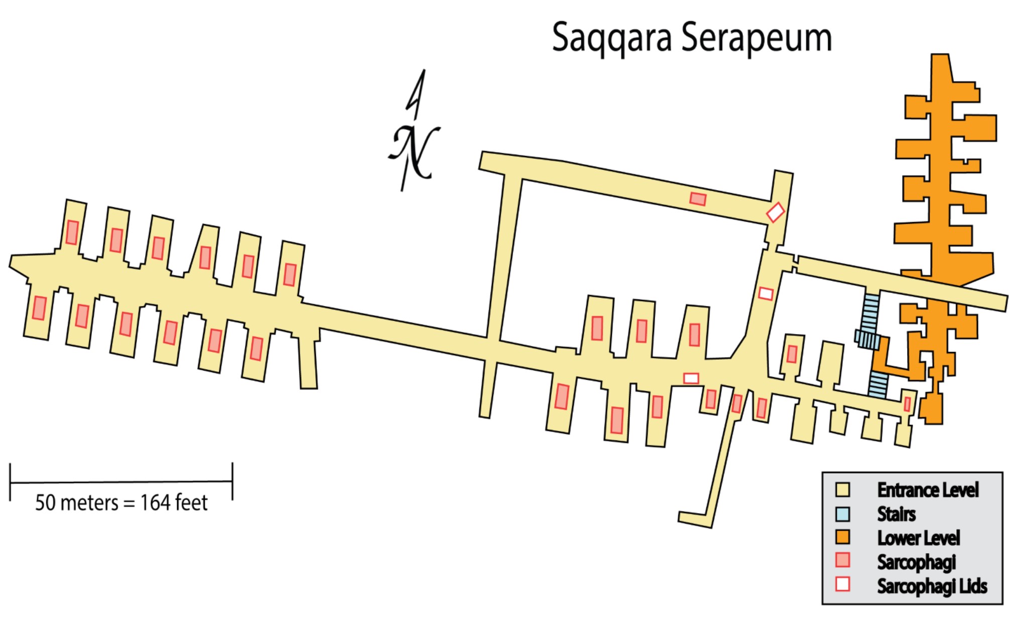 James Brown and his son Cayce visited the Serapeum again in March 2018. The site looks vastly different from 1978 since the recent massive restoration project. Brown noticed that the heavy encrustations of salt were gone, and the crumbling ceilings were reinforced with heavy metal braces. A wooden floor made walking easier and reduced dust. The 80-ton granite boxes were in the same locations.