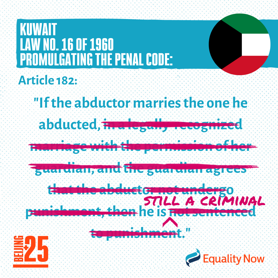 To keep countries accountable to the plan outlined in the Beijing Platform for Action, Equality Now has been tracking these laws for 25 years and has conducted periodic reviews on sexist legislation around the world.