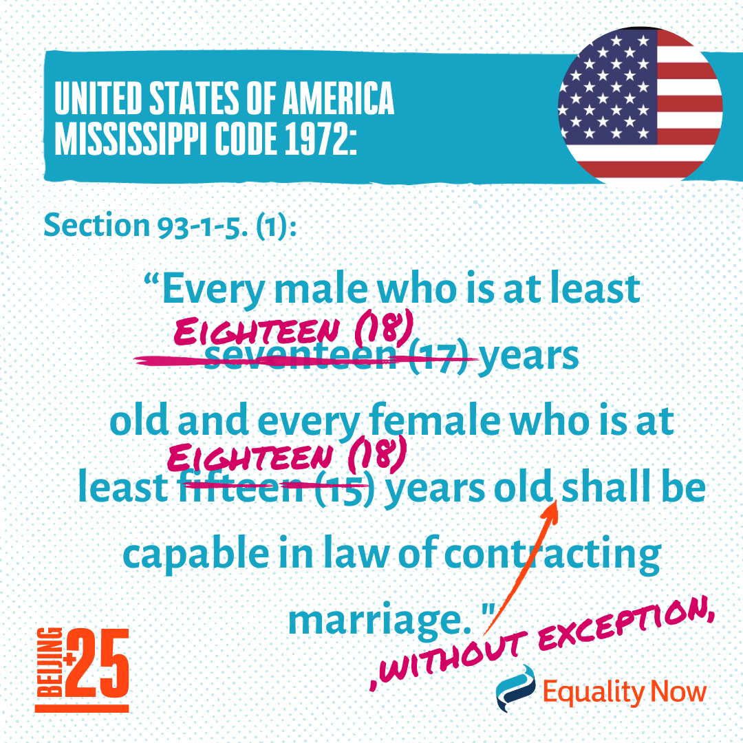 Child marriage is legal in countries such as Cuba, the Dominican Republic, Tanzania, and the United States, where there is no federal law on child marriage and the minimum age of marriage is effectively below 18 years old in 48 states.