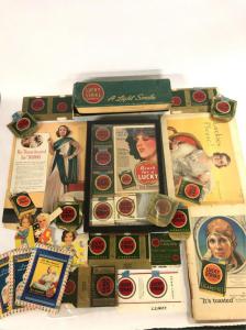 Lot 263 consists of 35 pieces related to Lucky Strike cigarettes. Included are game cards, paper dolls, magazine ads featuring Amelia Earhart and Dolores Del Rio and more (est. $300-$400).