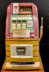 The pinball machines, slots and coin-ops from other consignors are generally higher-ticket items. A Mills “Hightop Bonus” 5-cent slot machine and base, in good working condition, is expected to hit the jackpot for $800-$1,600. The three-reel, nickel slot features a cast aluminum front, back door, key and coin box. It sits atop a sturdy oak base with a cast chrome figural emblem.