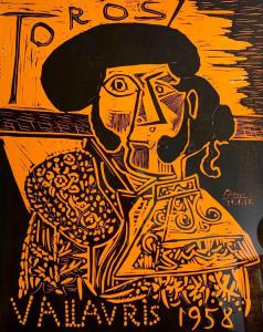 A Pablo Picasso (Spanish, 1881-1973) linocut grappled with Daughters’ Taos Homestead for top billing; both sold for $19,680. Toros Vallauris, a black and orange Picasso print, portrayed a bullfighter and was signed by the artist in red crayon. The 1958 linocut came from a Cleveland interior designer’s collection and was housed in a 35 ½ inch by 29 ½ inch frame.