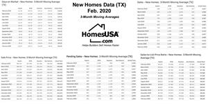 The HomesUSA.com New Home Sales Report includes 3-month rolling average of statistics for new homes listed solely in the local Multiple Listing Services (MLSs) for the four largest Texas markets, including Dallas-Ft. Worth, Houston, Austin, and San Antonio.