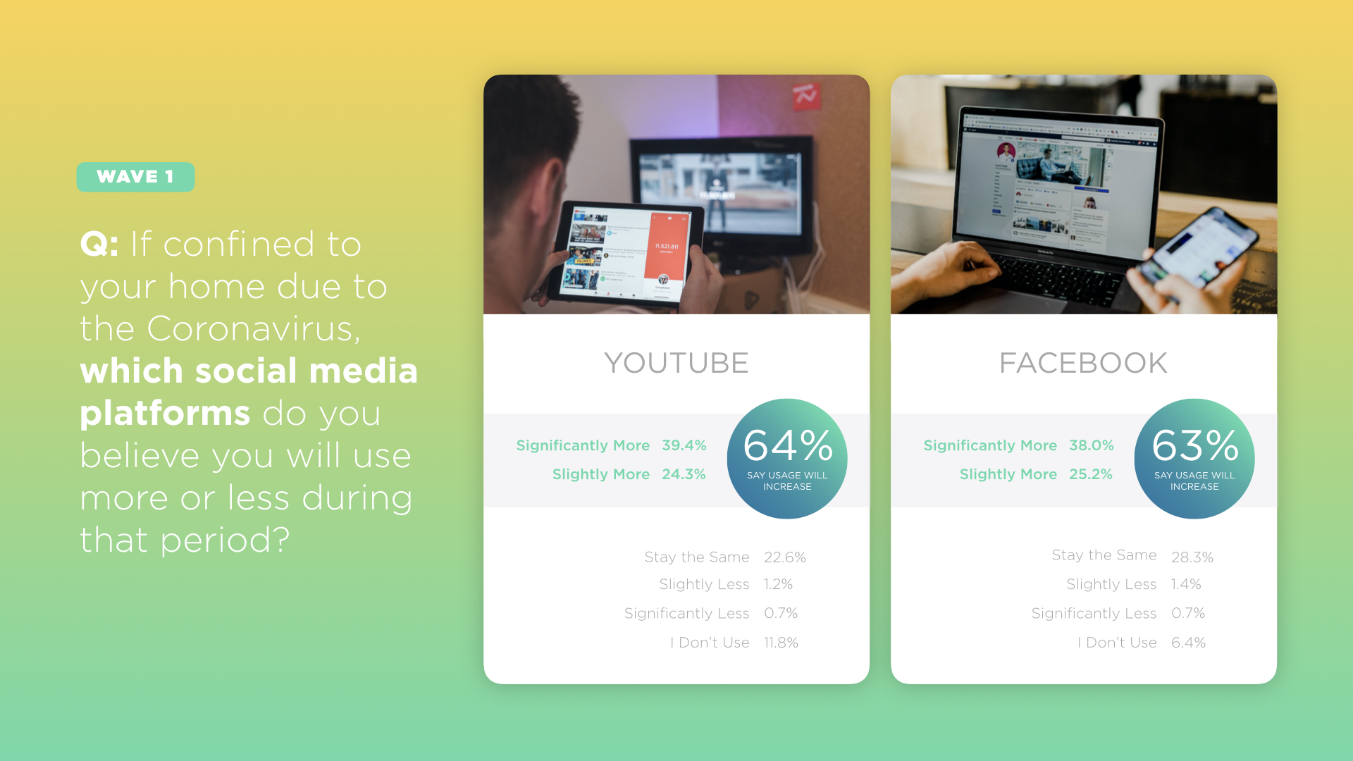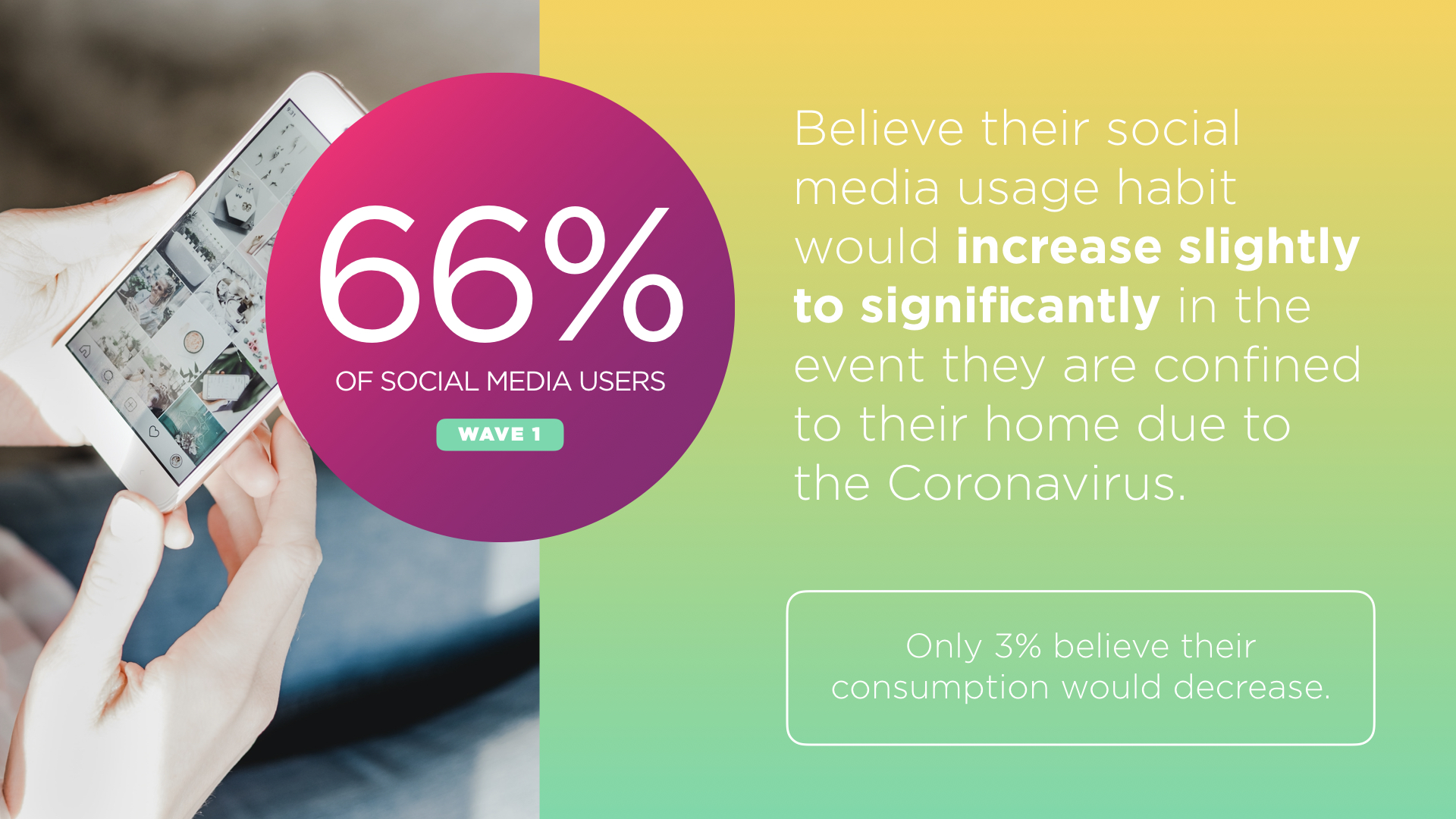 - 66% of social media users believe their social media usage habit will increase in the event they are confined to their home due to the Coronavirus.