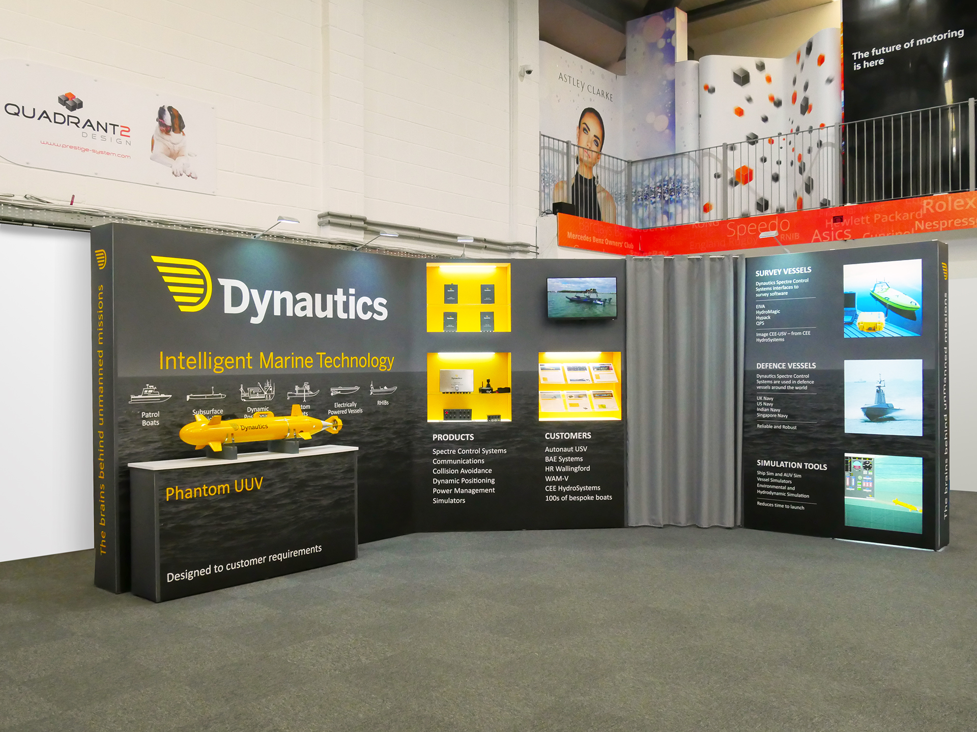 The Hampshire based company have now moved their exhibition online with an eye-catching stand designed and built by leading exhibition company Quadrant2Design. On the 16th March 2020, the day before they were due to exhibit at Excel London, Dynautics came down to Quadrant2Design’s design studio and factory to film this very special presentation of their exhibition stand.