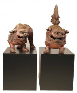 The sale also features a monumental pair of Bizen Kara Shishi (temple lions) made by one of Japan’s leading artists working in the traditional Bizen techniques. Mori Togaku has been at the forefront of the Japanese art world for nearly 30 years. In fact, in 2001 Togaku was awarded the Japan Ceramic Society’s prestigious Gold Prize. He was the first Bizen potter to ever receive such a highly regarded award. The large-scale lions are superb representations of Shishi and could easily ward off evil spirits. The artist was able to capture the movement of the lions in a snapshot moment of time. The pair are muscular, tense and ready to protect.