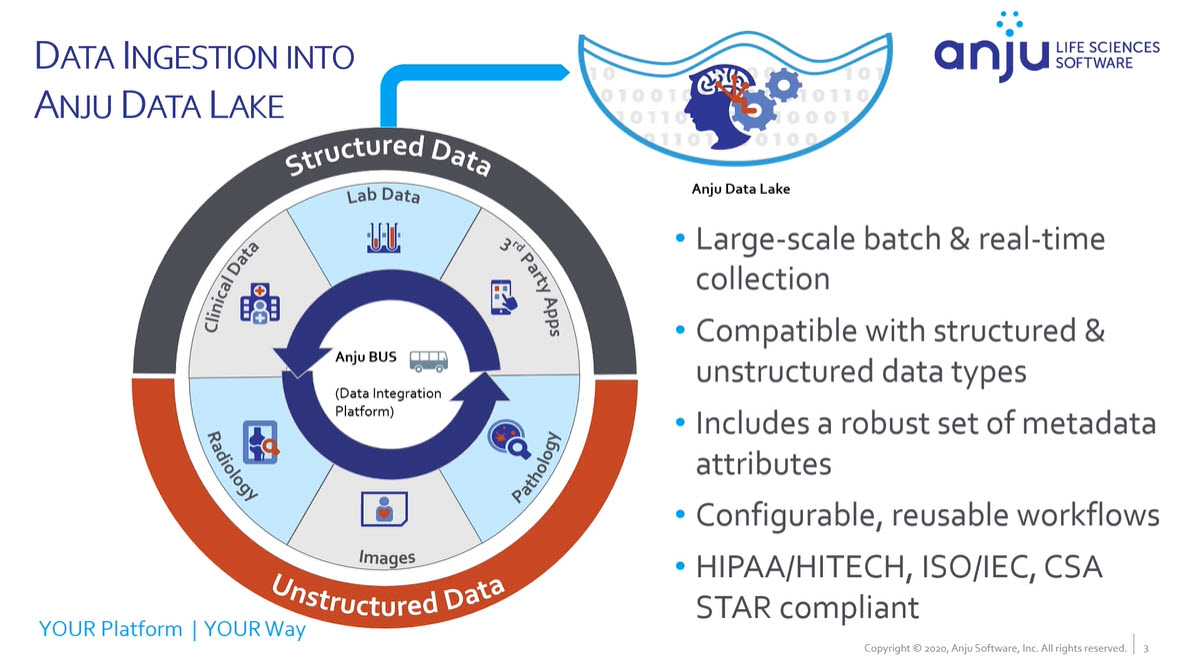 Bill Leander, Anju’s Chief Marketing Officer explains, “Structured, unstructured, external and internal data and digital assets are semantically linked, intelligently analyzed, and securely delivered in a self-service manner to decision-makers. The opportunities in front of Pharma companies from the potential gained through effective global patient-centric and decentralized/virtual trials simply cannot be realized without the next-generation capabilities inherent in this type of platform.”
