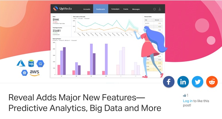 “Our new enhancements touch on the hottest topics and market trends, helping business users take actions based on predictive data,” says Casey McGuigan, Reveal Product Manager. “And because Reveal is easy to use, everyday users get very sophisticated capabilities in a powerfully simple platform.”