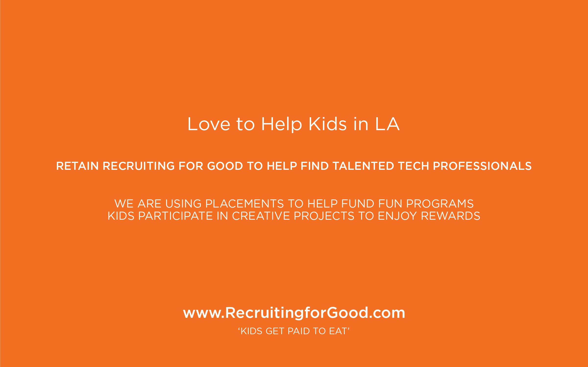 Recruiting for Good is helping fund cause Love to Feed LA; and will generate continuous proceeds from contract placements to help support Kids Get Paid to Eat.