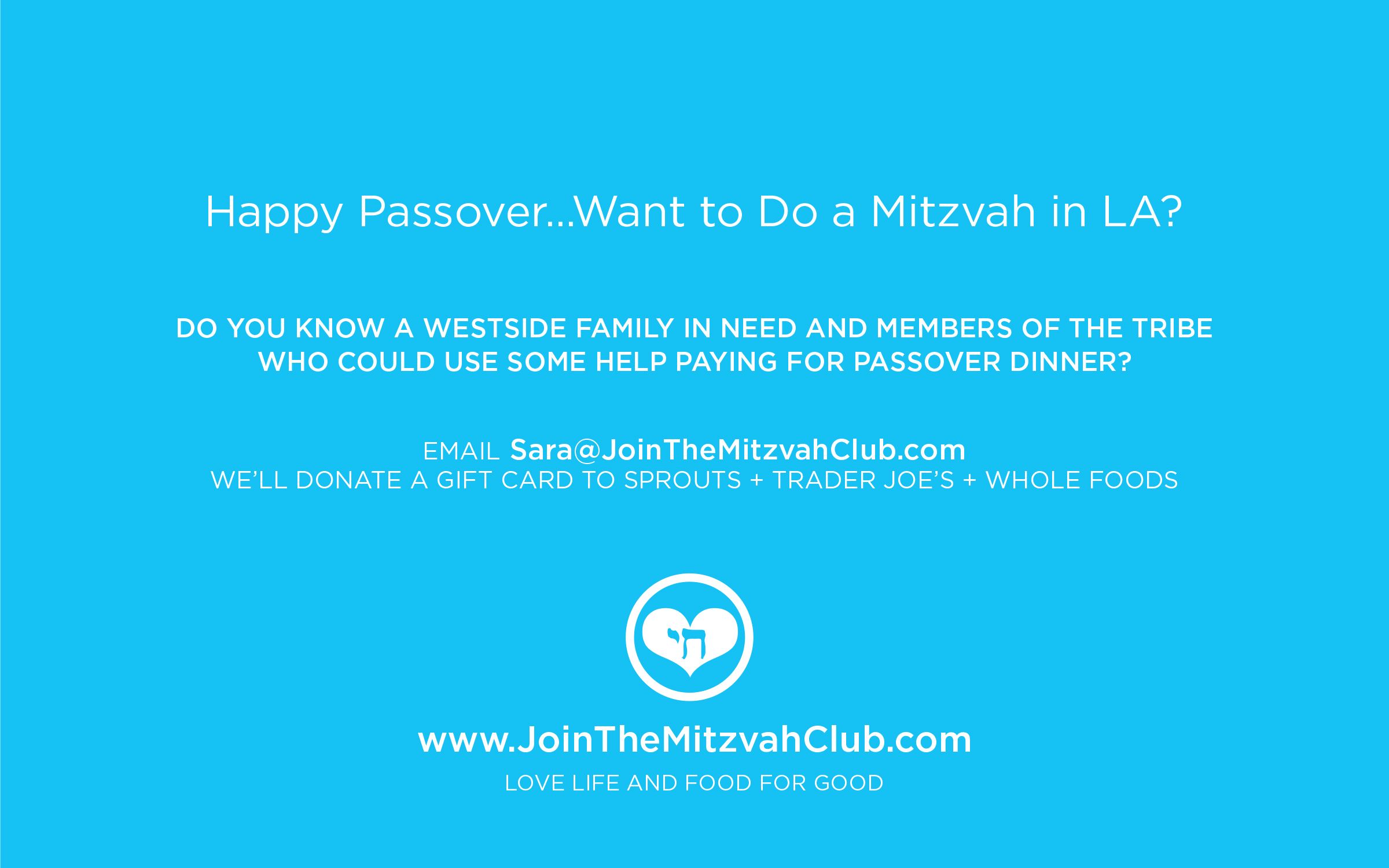 New Announcement Join the Mitzvah Club to Help Gift Food for Good This Passover