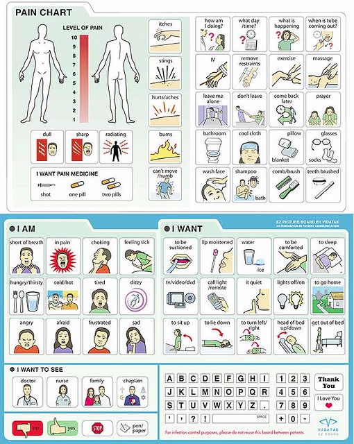 EZ Boards and the VidaTalk App allow patients to express their needs and indicate the type of pain they are experiencing.