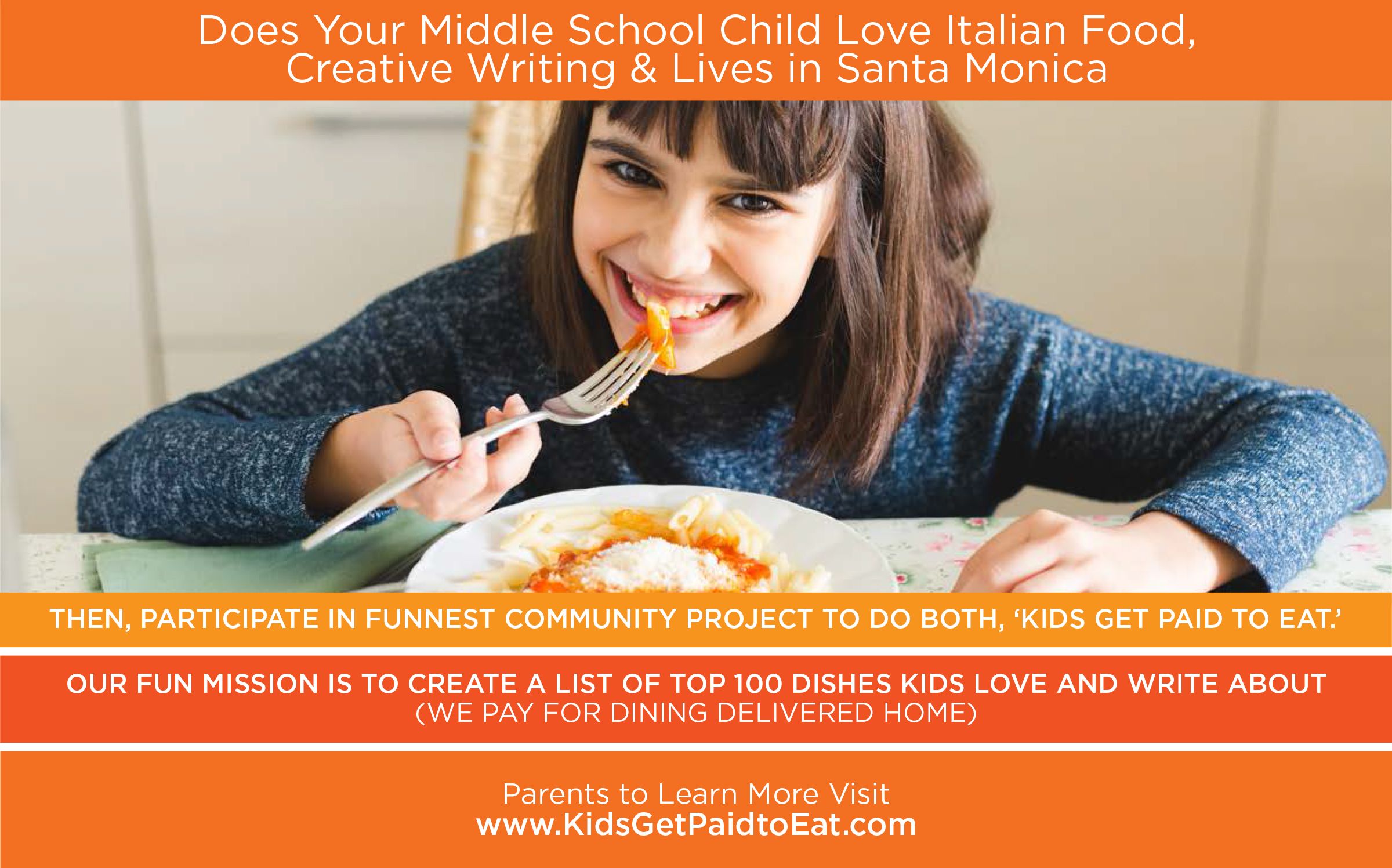According to Recruiting for Good, Fun Advocate+Founder, Carlos Cymerman, "We are looking for Italian American Kids who are passionate and proud of their heritage; come use your voice for good (write restaurant reviews), and inspire LA to support and visit the City's Best Italian Restaurants."