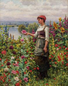 DANIEL RIDGWAY KNIGHT, American (1839-1924), Summer Afternoon, Seine Valley, oil on canvas, signed, 32 ¾ x 25 ¾ inches, Estimate $35,000-45,000