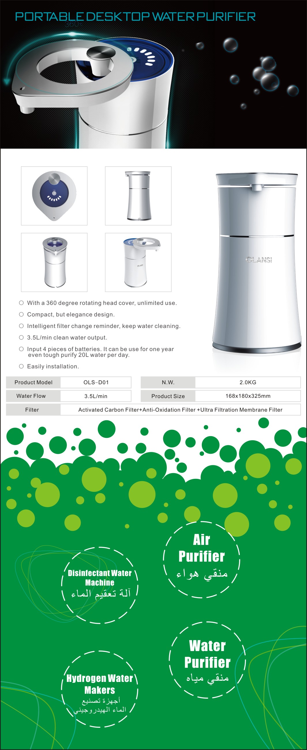 The company present its customers with Original Design Manufacturing (ODM) and Original Equipment Manufacturing (OEM) services. It has been able to secure a top position among it’s contenders by providing outstanding quality products and professional services. Olansi also has its personal air and water filtration units to nurture the quality and injection factory containing LG ABS.
