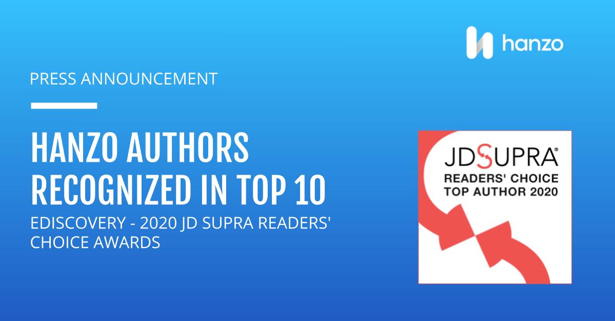 Three Hanzo Authors Named In Top 10 For Ediscovery Category of The 2020 JD Supra Readers' Choice Awards