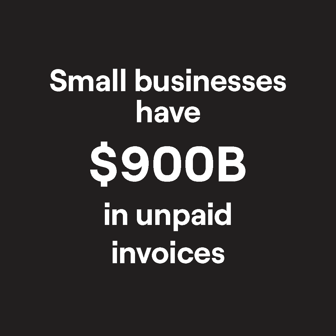 In 2019, our company collaborated with PYMNTS and surveyed over 1,000 people in the U.S. who worked at companies of varying sizes, from solopreneurs to executives at enterprises. We learned that in the U.S. alone, there were *$3.1 trillion in B2B receivables owed at any given time. When we removed the substantial portion owed to enterprises, we were still left with an enormous sum owed to B2B small businesses: $900 billion.
