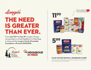 “We are incredibly proud of this wonderful program that helps address food insecurity head-on,” said Rosanne Longo, Spokesperson & Chair, Longo's Family Charitable Foundation. “Thanks to all of our guests who donate each year, our Neighbour in Need program has supplied over 170,000 bags of food to local food banks and provided healthy meals to more than one million people across Ontario. This year, the Longo’s Family Charitable Foundation has pledged to match donations up to $100,000 and has set a goal of donating 250,000 meals to Ontario food banks.”