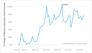 - Consumer engagement with reviews up 105% between February 2020 and April 2020
