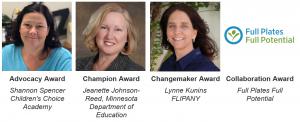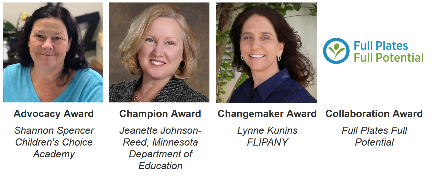The Collaboration Award highlights an organization which develops successful partnerships between government, sponsoring organizations and nonprofit, business, foundation, or other entity which result in improved impact and achieves greater outcomes for child nutrition programs. The 2020 Collaboration Award recipient is Full Plates, Full Potential based in Portland, Maine.