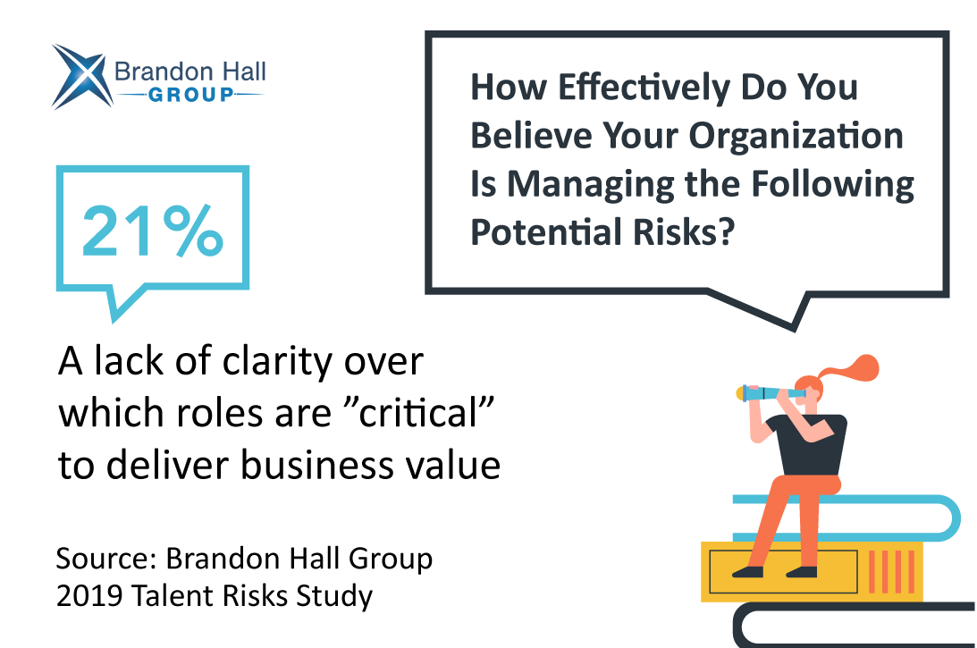In Brandon Hall Group’s 2019 Talent Risks Study, 20 possible talent-risk factors were examined. Even the lowest risk was considered a problem by 65% of organizations.