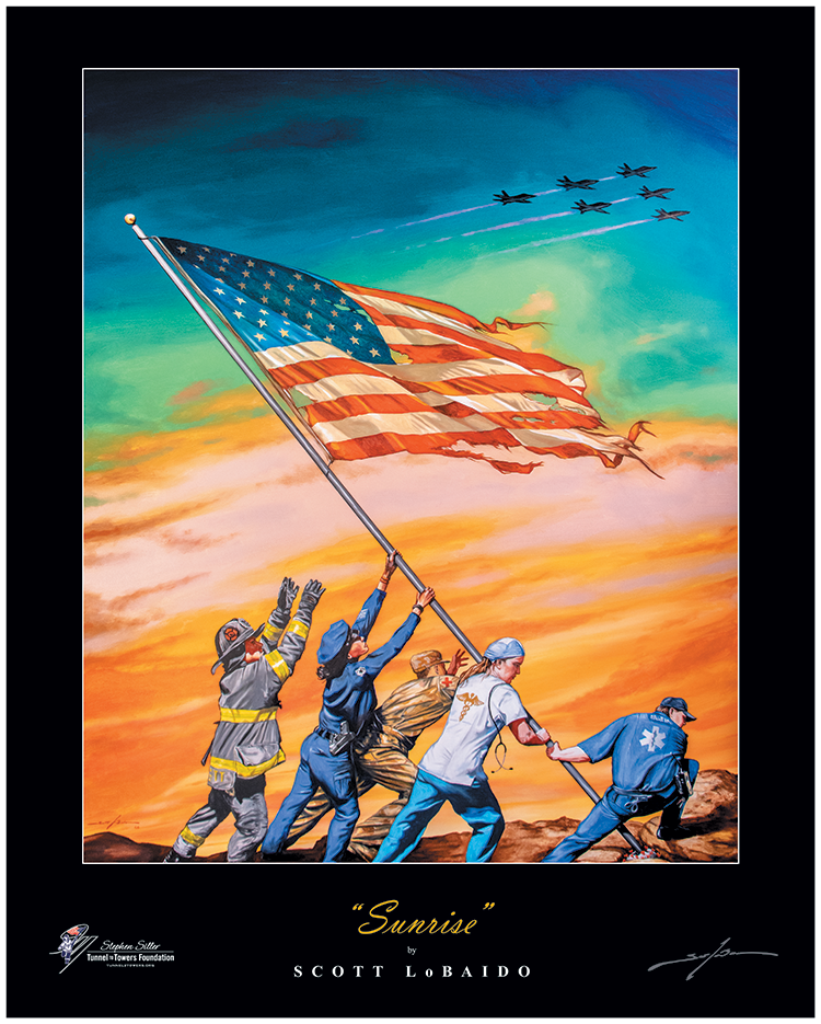 Staten Island, NY, May 10, 2020 (GLOBE NEWSWIRE) -- The COVID-19 pandemic has changed every aspect of American life, but the courage and strength of this country has not wavered. To recognize and honor the heroism of our frontline heroes, the Tunnel to Towers Foundation partnered with America’s Artist Scott LoBaido to create “Sunrise: A Tribute to First Responders.”