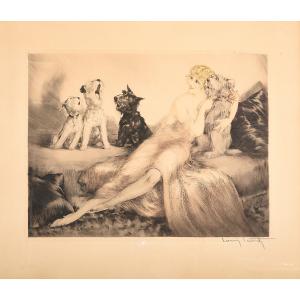 The etchings of Louis Icart (French, 1888-1950) epitomize the depiction of women during the Art Deco period. Whether seductive or pensive, Icart’s women have the lush, stylized allure that makes Art Deco art and illustrations so striking. Three Louis Icart aquatint etchings are offered at Michaan’s in May. “Perfect Harmony” and “Meditation (Dans les Rêves)” are $800-1,200 each, and “The Lamp” is estimated at $500-700. The Icart etchings are just a few of the May auction’s many wonderful works by international artists such as M.C. Escher and Peter Max. Contemporary mixed media pieces by Kim Frohsin are among the American works of art on offer. A small etching by the great James Abbot MacNeill Whistler, “Billingsgate,” dates to 1859 and is offered at $400-600.
