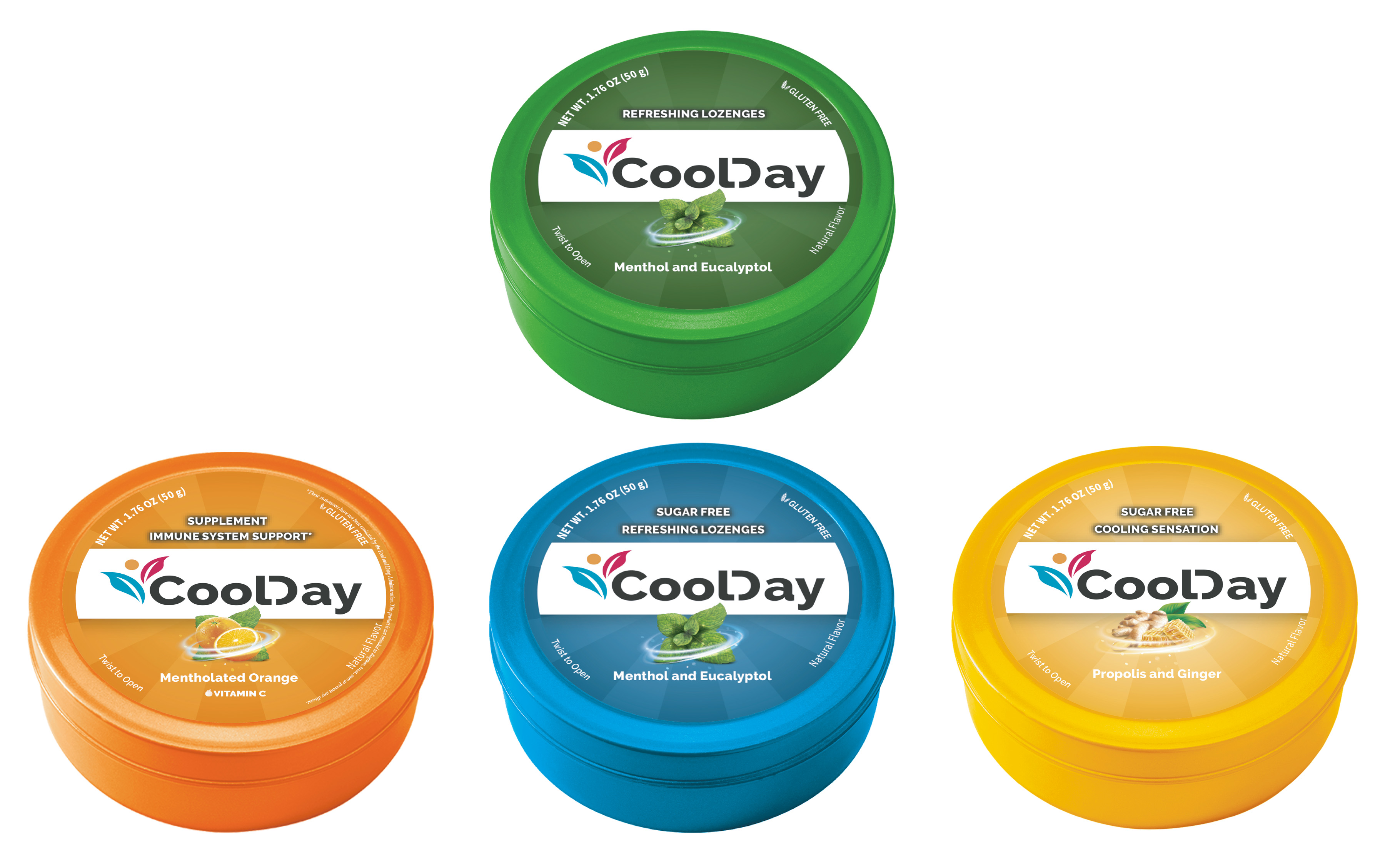 - Cool Day Sugar-Free Cooling Sensation with Propolis and Ginger.