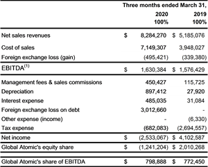 The loans are denominated in US dollars but converted to Turkish Lira for functional accounting purposes. For presentation purposes, the equity interests are then converted to Canadian dollars. The foreign exchange loss related to the joint venture debt was C$3,012,660 ($1,476,203 at 49%). This foreign exchange loss is an unrealized loss, and largely relates to the depreciation of the Canadian dollar relative to the US dollar, from $0.75 at December 31, 2019 to $0.70 at March 31, 2020. In economic terms, all revenues are received in US dollars and these will be used to pay down the US denominated debt, so no real exchange gains/losses will be realized in US dollar terms. The accounting exchange losses relate to the debt are shown below EBITDA as a financing related cost.