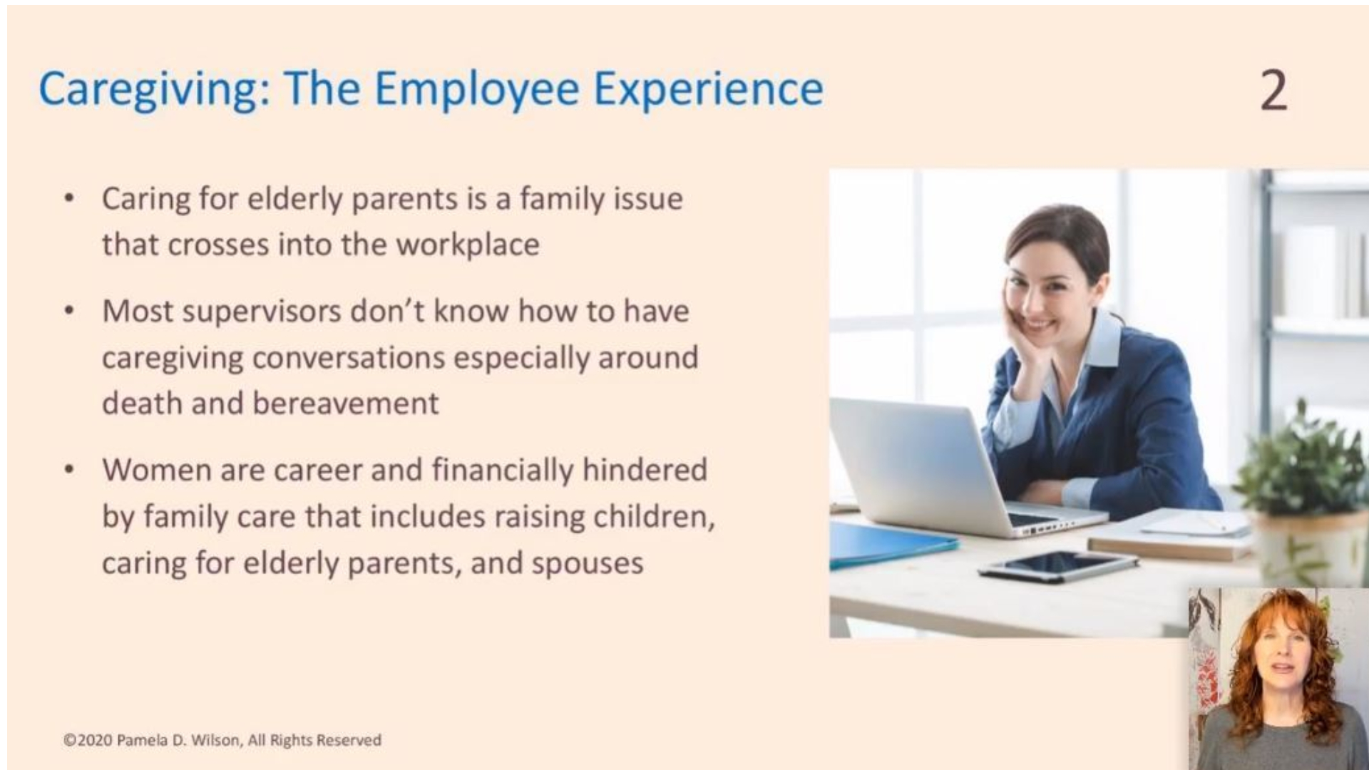 GOLDEN, COLORADO, USA, May 26, 2020 /EINPresswire.com/ -- This free on-demand human resource webinar by caregiving expert Pamela D Wilson shares the experiences and worries of working caregivers. COVID-19 has changed aspects of caregiving. Daily life and the workday are interrupted by juggling work projects and caring for elderly parents.