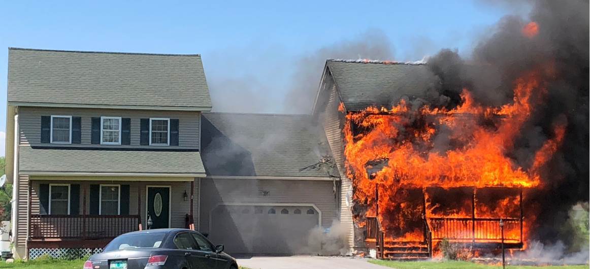 On May 27, 2020 at 2:13 PM the Fairfax Fire Department was dispatched to a report of a residential structure (duplex) fire at 9 Bailey Road in the Town of Fairfax, VT. The fire was discovered by Jimmy Reed of Westford, who was traveling along VT Route 104 when he noticed the smoke coming from the duplex. Mr. Reed went to the duplex and alerted the homeowner of the fire.