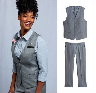 Being a luxury brand, J.W. Marriott wanted their Wardrobe to be elegant and add to their brand story, enhancing their guest experience. It was especially important that their associates felt good in what they were wearing and had options and flexibility. The color foundations of this collection were inspired by the J.W. Brand color palette – neutral greys with accents of a warm blush – and was designed to be a Wardrobe rather than a “Uniform.” The Wardrobe approach provides associates with the flexibility to mix, match, and merchandise the garments within their job function based on their personality and style preferences, just as they would with their personal wardrobe.