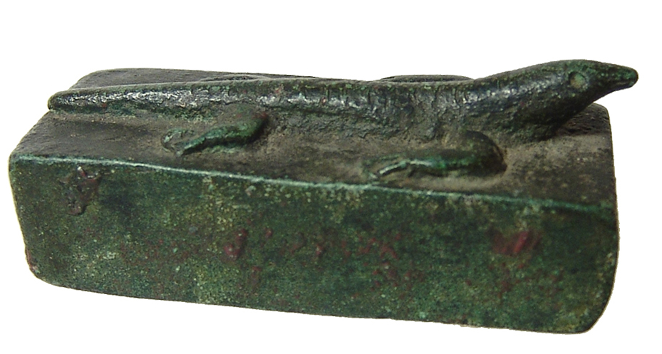 Late Period Ptolemaic Egyptian bronze sarcophagus of a lizard, (circa 664-30 BC), associated with the god Atum, a nice example with good detail (est. $450-$700).