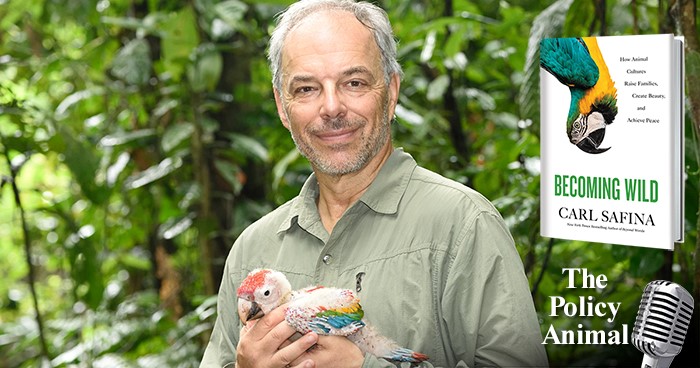 Carl Safina, founding president of the Safina Center and a professor holding the endowed chair for Nature and Humanity at Stony Brook University in New York state, is one of the world's leading ecologists focused on animal cognition and animal behavior. His latest book, Becoming Wild: How Animal Cultures Raise Families, Create Beauty, and Achieve Peace, is yet one more immense contribution from him to our understanding of the lives, feelings, and families of animals. With remarkable writing and story-telling, Safina introduces us to the cultures of animals – from the uniquely intense sound-making of the little-understood and seldom-seen sperm whales to the arresting beauty of Scarlett Macaws to the dramatic jockeying for power among male chimpanzees in their communities. Thanks to him, Donald Griffin, and other leading ecologists and ethologists, the long debate about whether animals have “intelligence” and the capacity to suffer is over. With his insights about the cultures of animals, he brings us a much more nuanced, richer understanding of animals and their remarkable capabilities and social relationships.