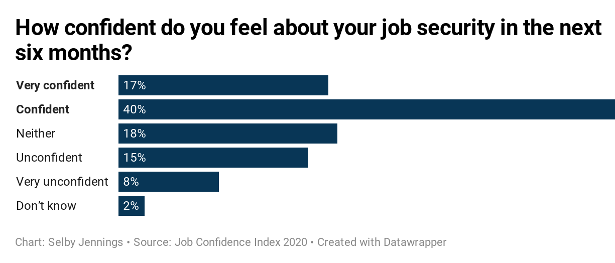 57% of financial services professionals feel confident about job security over the next six months