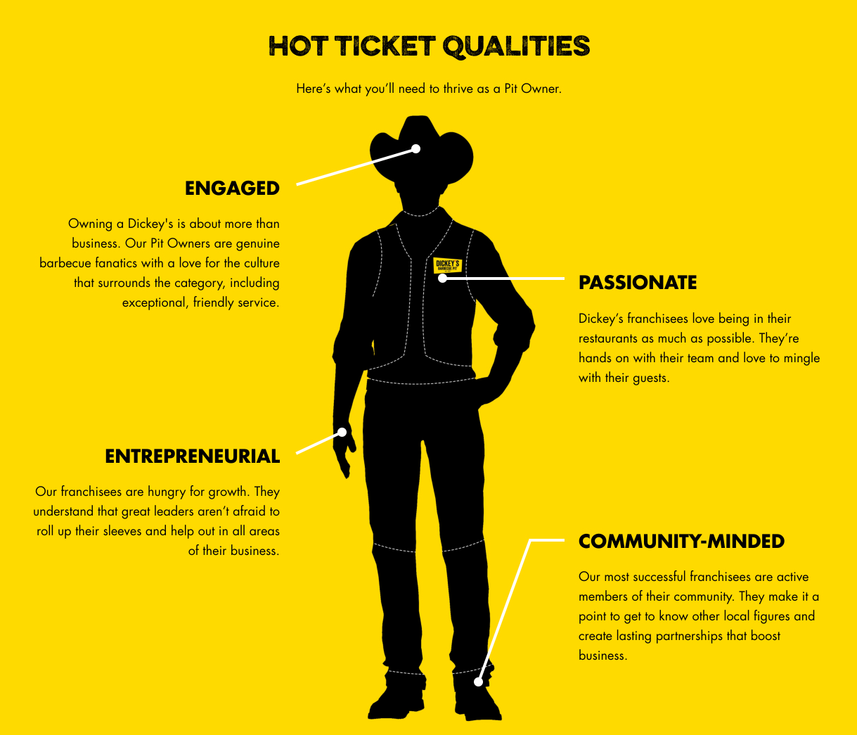 The new website goes into greater depth about the details of owning a Dickey’s Barbecue Pit franchise. It’s easier to navigate through Dickey’s available markets, international opportunities, brand facts, opening processes, and basic qualifications for joining the family. It also now highlights Veteran opportunities and current partnerships that Dickey’s has with the Veteran community. In addition, Dickey’s updated franchise site features franchisee testimonial videos that highlight the perspective from current owners/operators.