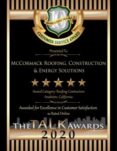McCormack Roofing, Construction & Energy Solutions is located in Anaheim, California. For more information, call 714-777-4040 or go online to mccormackroofing.com. Visit the company’s Award Page at https://winner.thetalkawards.com/mccormack-roofing-construction-and-energy-soluti.