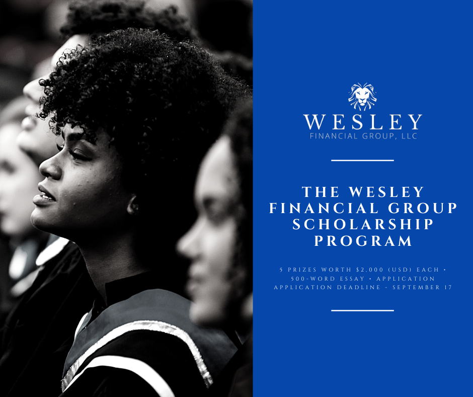 For more information and apply for this opportunity, please visit: wesleyfinancialgroupscholarship.com.
