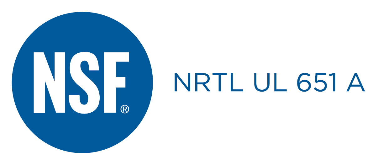 Products certified by NSF International to UL 651A carry the NSF-NRTL UL 651A mark.