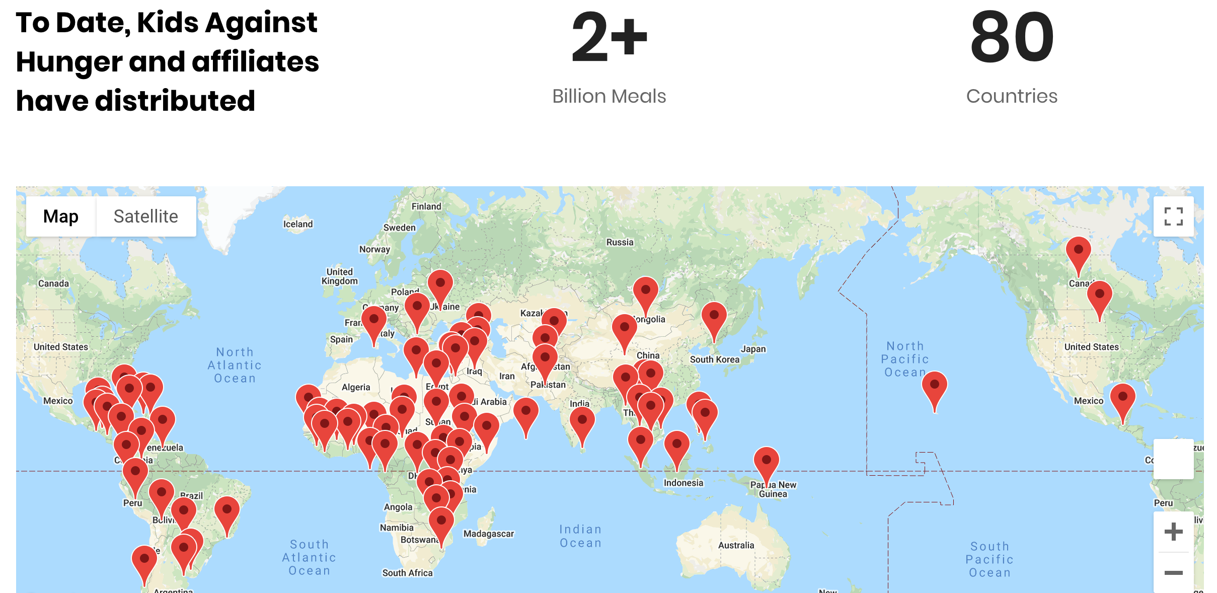 To date, Kids Against Hunger Global has distributed over 14 million meals consisting of their specially formulated foods to starving families in over 80 countries.
