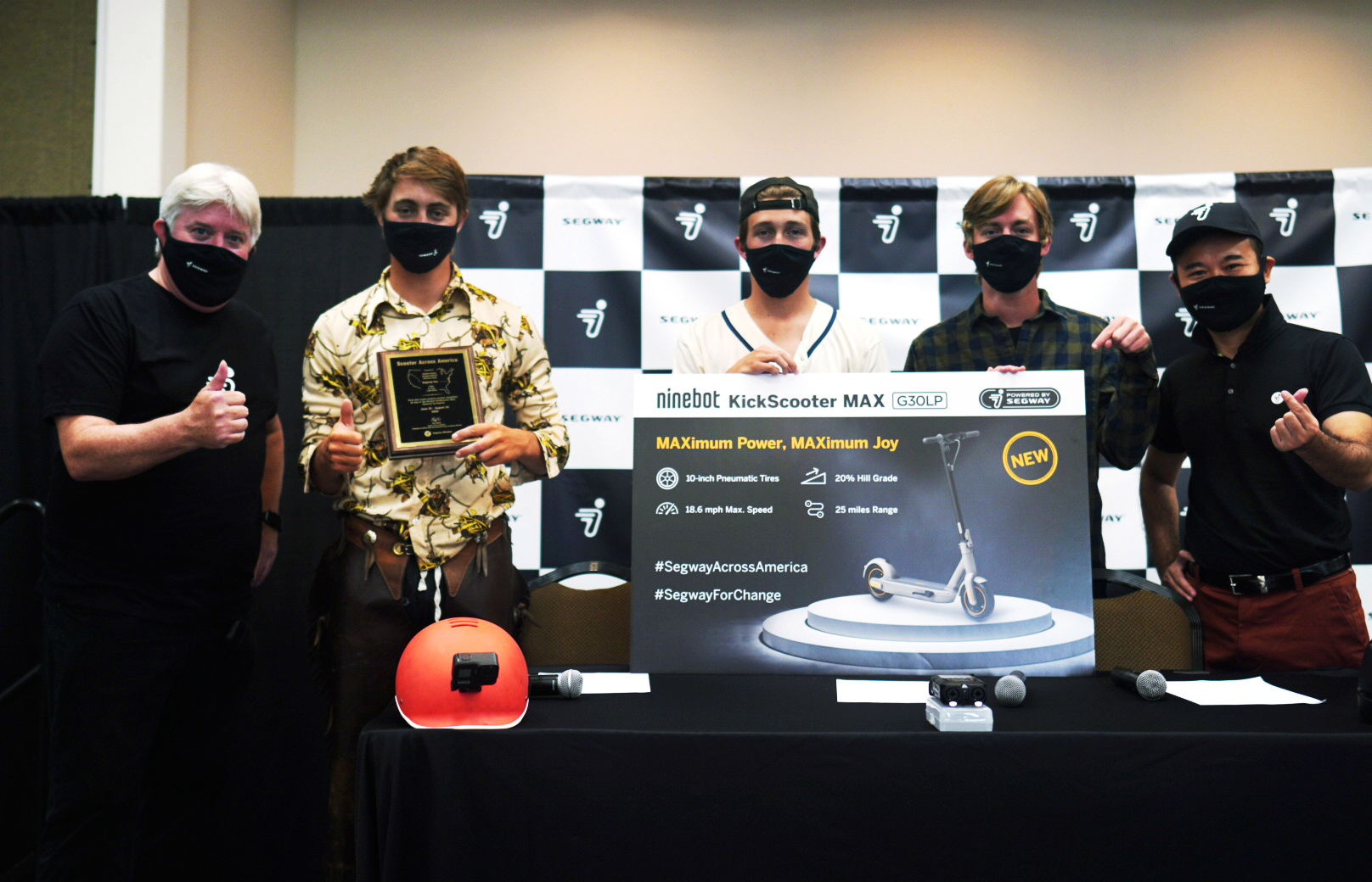 To celebrate this great adventure, Segway-Ninebot held a live press conference with The Scooter Crossing team today at 10:30 am PST (1:30 pm EST) via their official Instagram account, @segwayinc. Alex Huang, Senior Vice President and President of the Global Sales Management Group of Segway-Ninebot greeted The Scooter Crossing team with a warm welcome. Followed by a brief speech from Alex Huang, he presented The Scooter Crossing team with an award plaque and the team signed one of the Ninebot KickScooter Max which will be kept at Segway Headquarters. In exchange for the MAX that completed this grand cross-country journey, one newly released Ninebot KickScooter G30LP was gifted to Graham Pollard during the event.