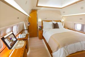 Featuring a custom interior and master bedroom with a large bed, shower with exclusive steam feature, conference room, lounge area, and three lavatories, the BBJ is the first private charter with GoGo 2kU fully worldwide highspeed internet connectivity. All onboard monitors have Apple TV for streaming and Sling TV for live TV. The galley is equipped with wine chiller, two microwaves, oven and De’Longhi coffee/espresso maker.