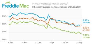 MCLEAN, Va., Sept. 03, 2020 (GLOBE NEWSWIRE) -- Freddie Mac (OTCQB: FMCC) today released the results of its Primary Mortgage Market Survey® (PMMS®), showing that the 30-year fixed-rate mortgage (FRM) averaged 2.93 percent.