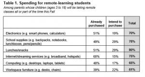 From computers to snacks, families have been spending on at-home schooling needs – and they plan to buy more