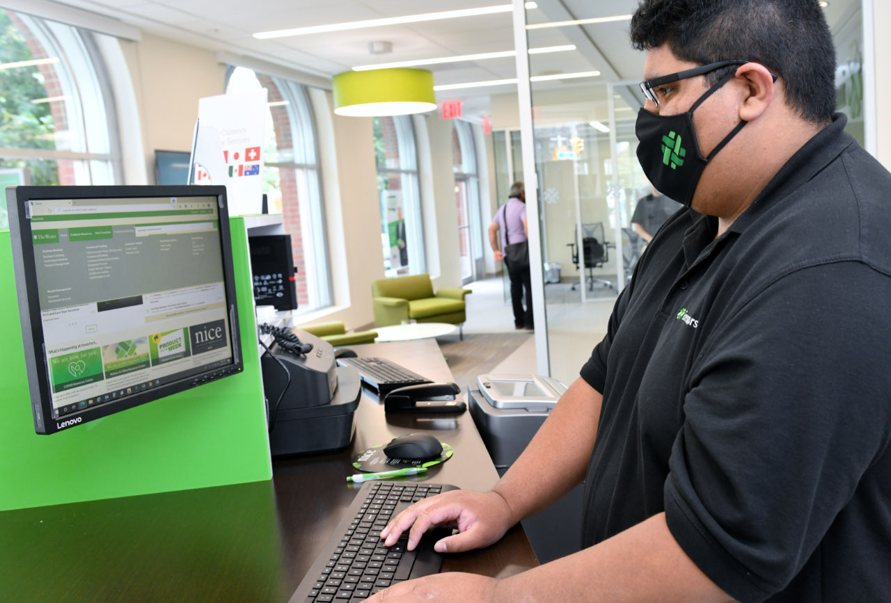Universal bankers assist clients at convenient banking pods by using advanced computer tablets to rapidly deliver a wide range of services