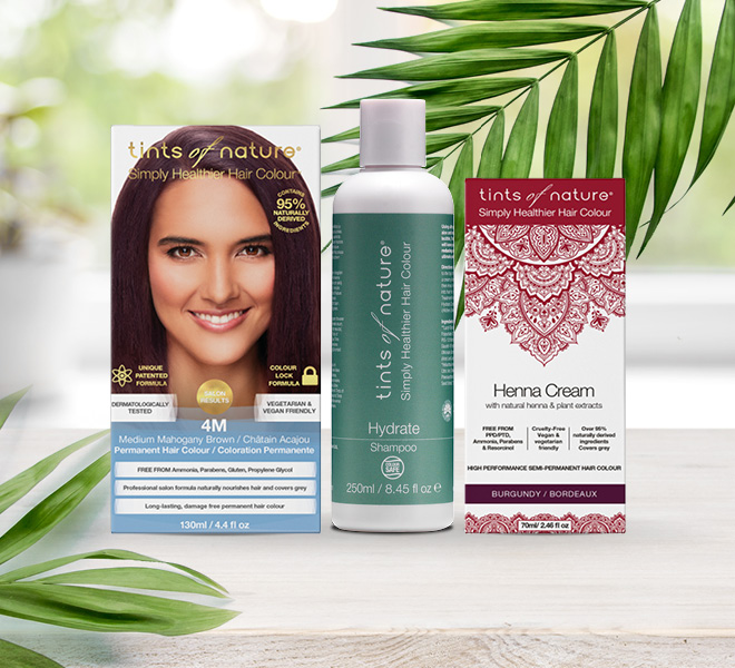 Tints of Nature, which offers a line of permanent colors and semi-permanent henna colors, contain more than 75 percent certified organic and 95 percent naturally-derived ingredients. Tints of Nature does not contain ammonia, parabens, gluten, formaldehyde, propylene glycol, silicone, mineral oils, and color stripping salts.