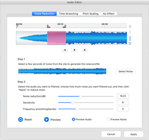 Enhance your audio files, reduce distracting background noise, adjust sound, and get creative with audio effects using Toast’s new audio tools. Ensure audio recordings fit the length of your projects with new time-stretching capabilities and easily adjust the length of a recording while preserving its original pitch.