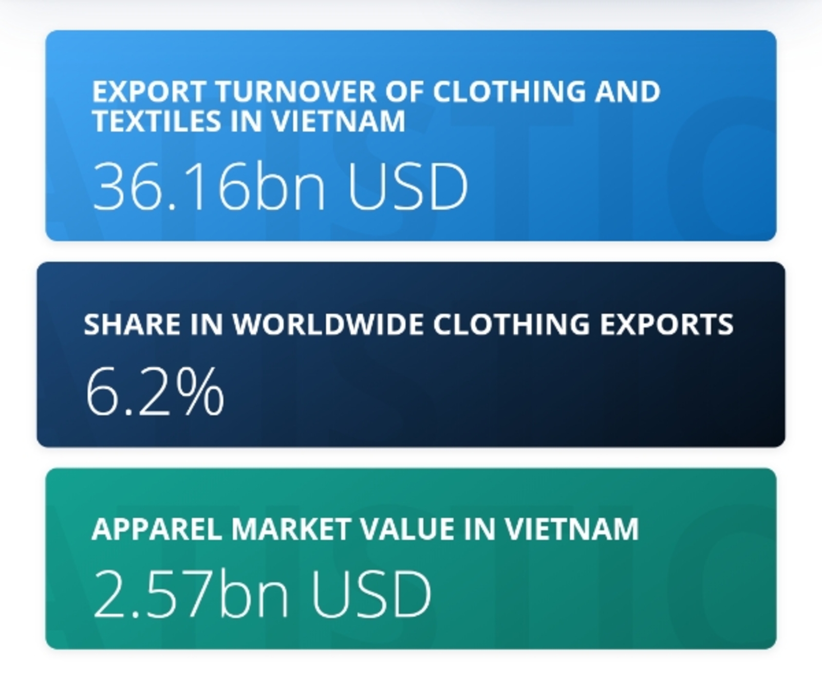 Vietnam has become the Second largest Exporter of Clothing & Textile in the world after China Outrunning Bangladesh. Vietnam has outrun Bangladesh by exporting textiles, seeing products by June 2020.