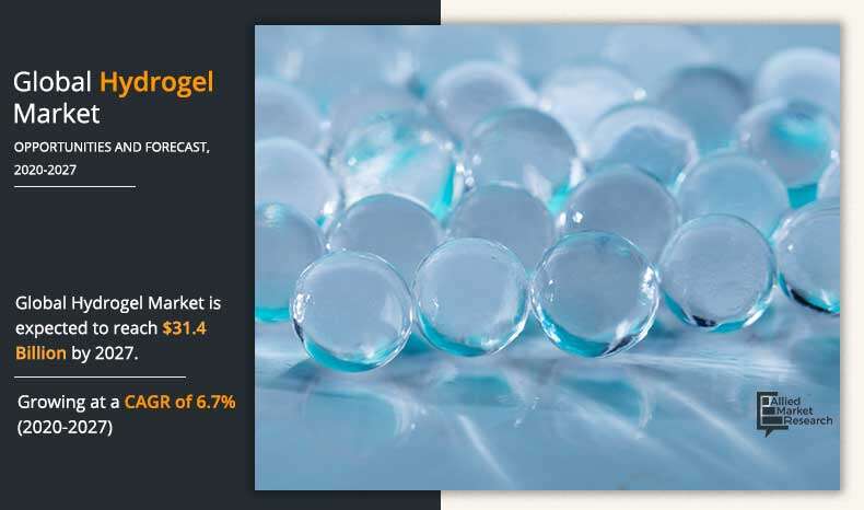 PORTLAND, OREGON, UNITED STATES, October 3, 2020 /EINPresswire.com/ -- Allied Market Research published a report, titled, "Hydrogel Market by Raw Material Type (Synthetic, Natural, and Hybrid Hydrogels), Composition (Polyacrylate, Polyacrylamide, Silicone-Modified Hydrogels, Agar-Based, and Others), Form (Amorphous Hydrogels and Semi-Crystalline Hydrogels), Product (Semi-Crystalline Buttons, Amorphous Gels, Impregnated Gauze, Films & Matrices, and Hydrogel Sheets), and End-User (Lenses, Hygiene Products, Wound Care, Drug Delivery, Tissue Engineering, and Others): Global Opportunity Analysis and Industry Forecast 2020–2027."According to the report, the global hydrogel industry was estimated at $22.1 billion in 2019, and is anticipated to hit $31.4 billion by 2027, registering a CAGR of 6.7% from 2020 to 2027.Drivers, restraints, and opportunities-